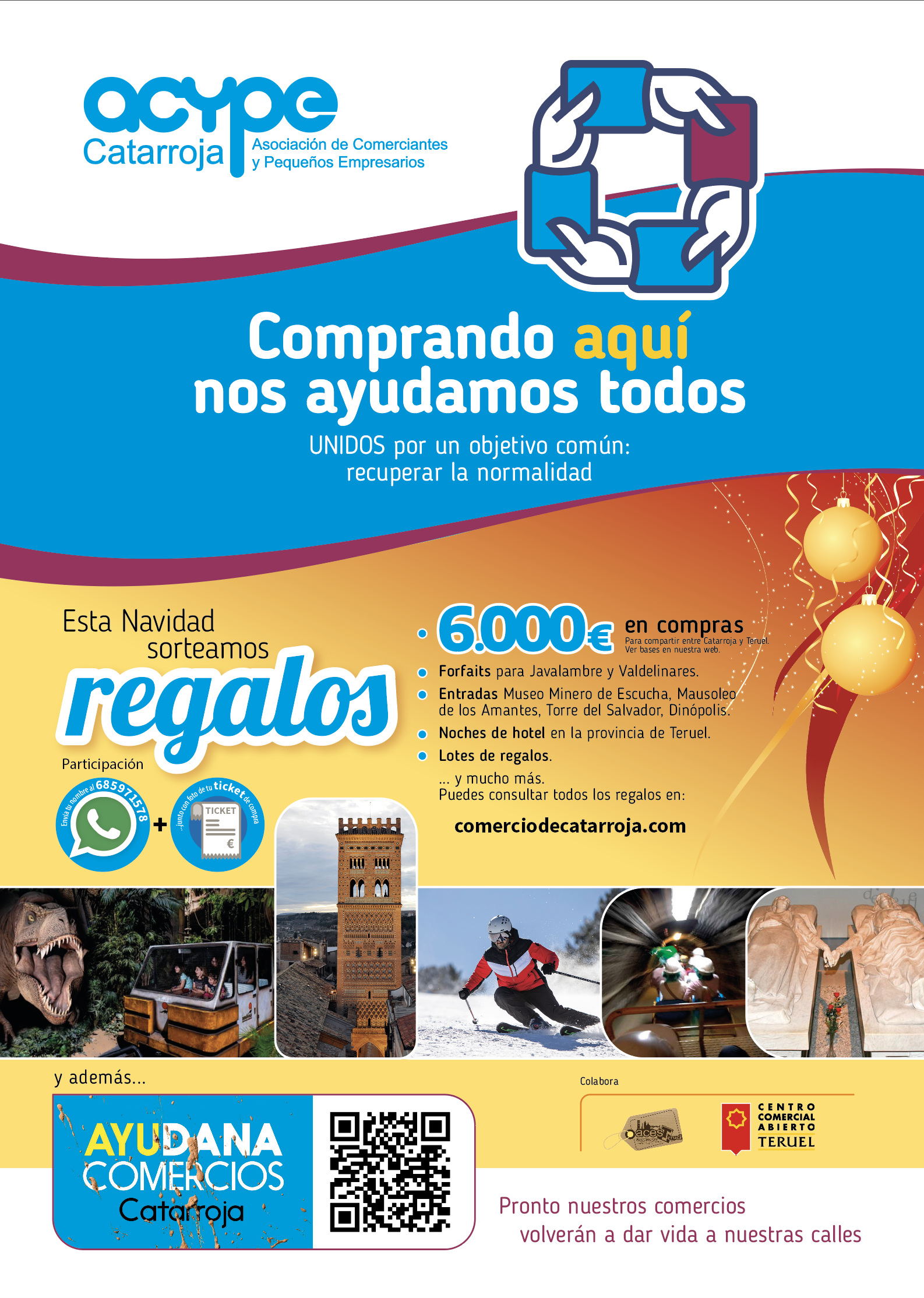Desde la Asociación de Comerciantes y Pequeños Empresarios de Catarroja, en adelante ACYPE, hemos trabajado para poder desarrollar una campaña de Navidad en Catarroja y poder iniciar el camino de la recuperación tras la desgracia que nuestra ciudad ha sufrido por la dana. Están colaborando con nosotros el Centro Comercial abierto de Teruel, en adelante CCA de Teruel y la Asociación de Comerciantes, Empresarios y Servicios de Teruel, en adelante ACEST